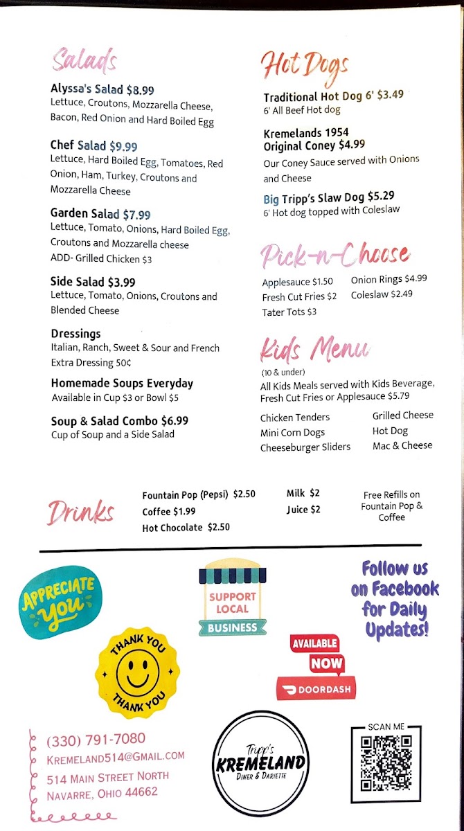 Located in the heart of Navarre, Ohio, Tripp's Kremeland is a charming throwback to classic American diners, known for its delightful menu that serves up genuine, scratch-made Midwestern cuisine. Guests rave about their creamy ice cream, mouthwatering Coney dogs, and delectable fried portabella mushrooms, making it a hit among families and diners of all ages.